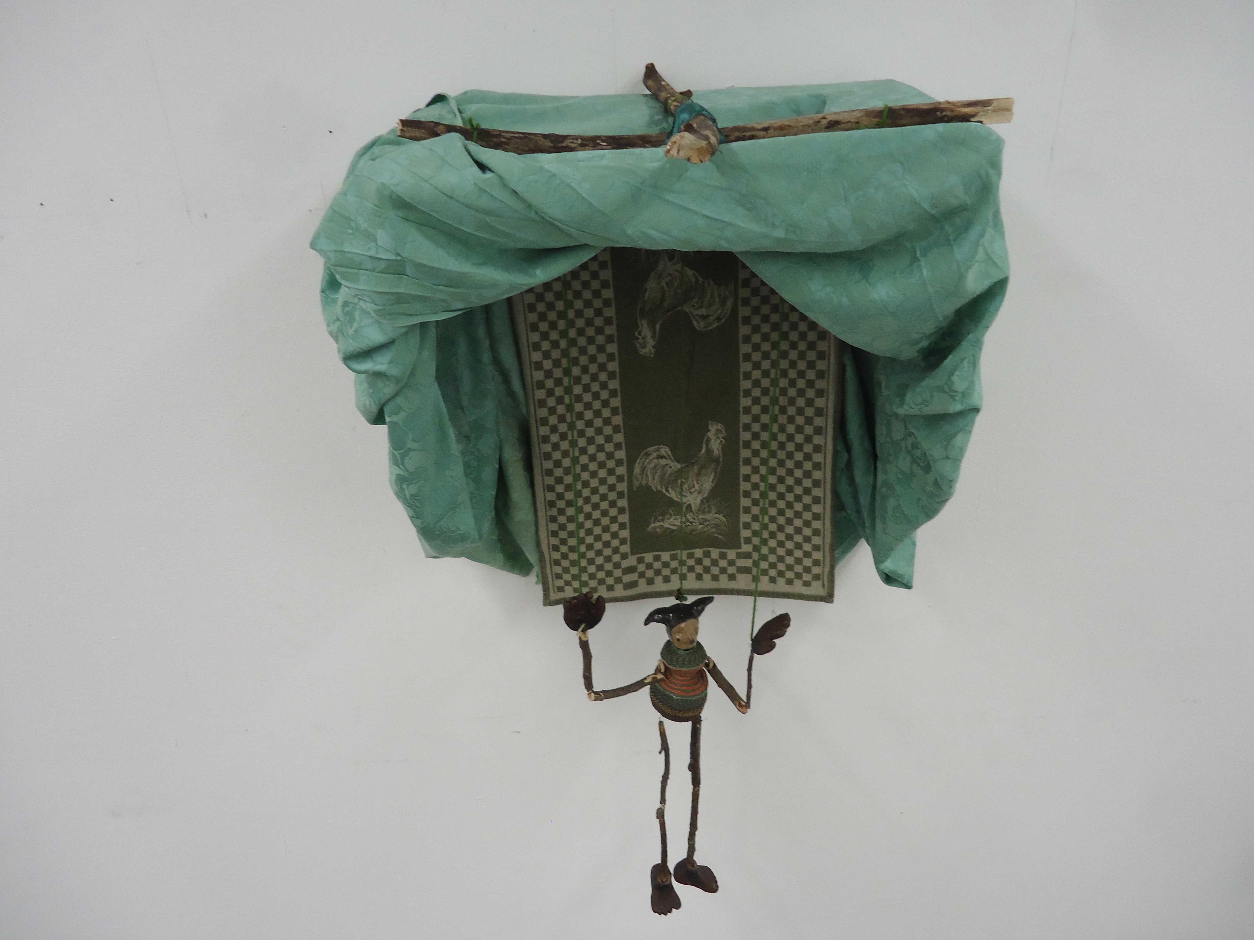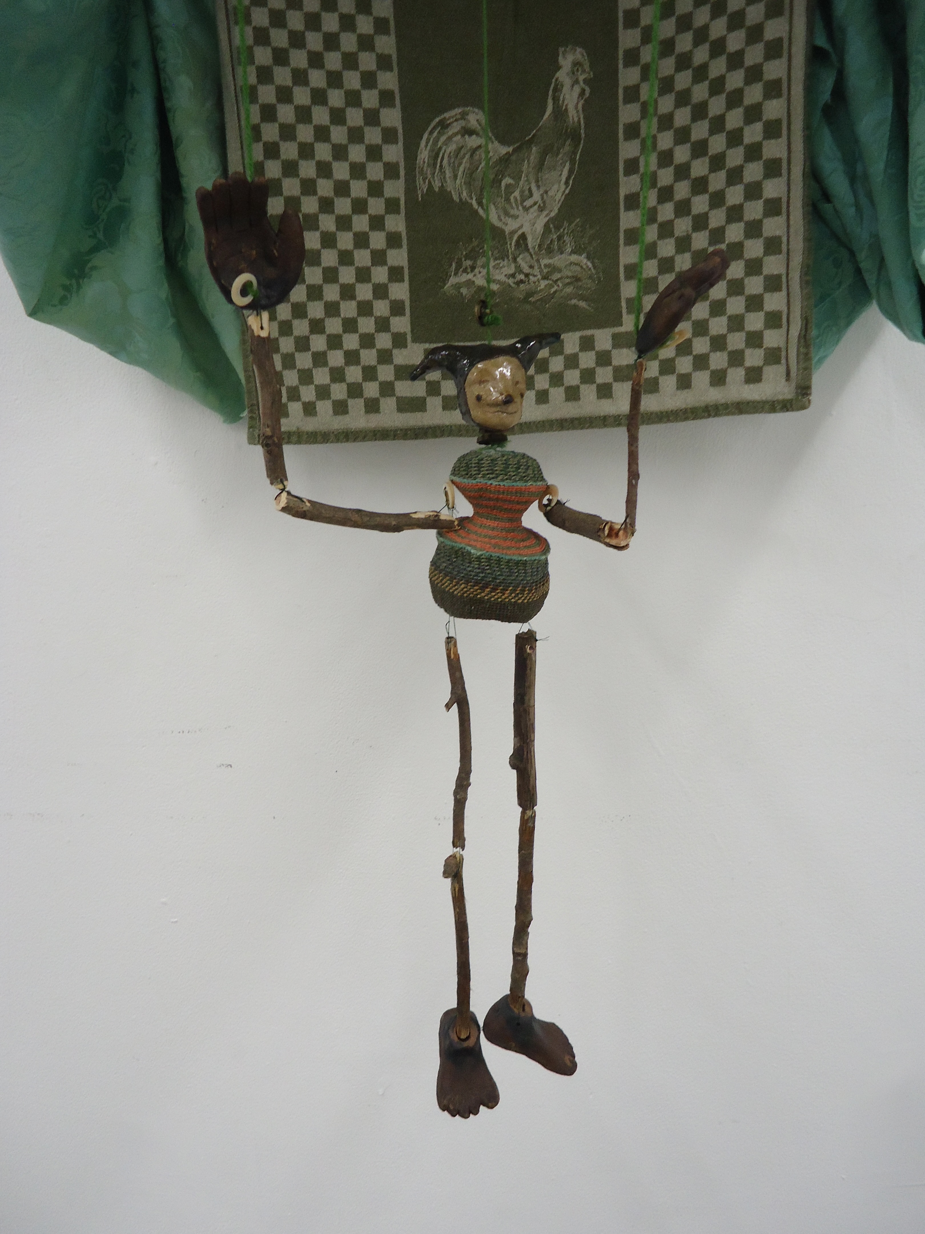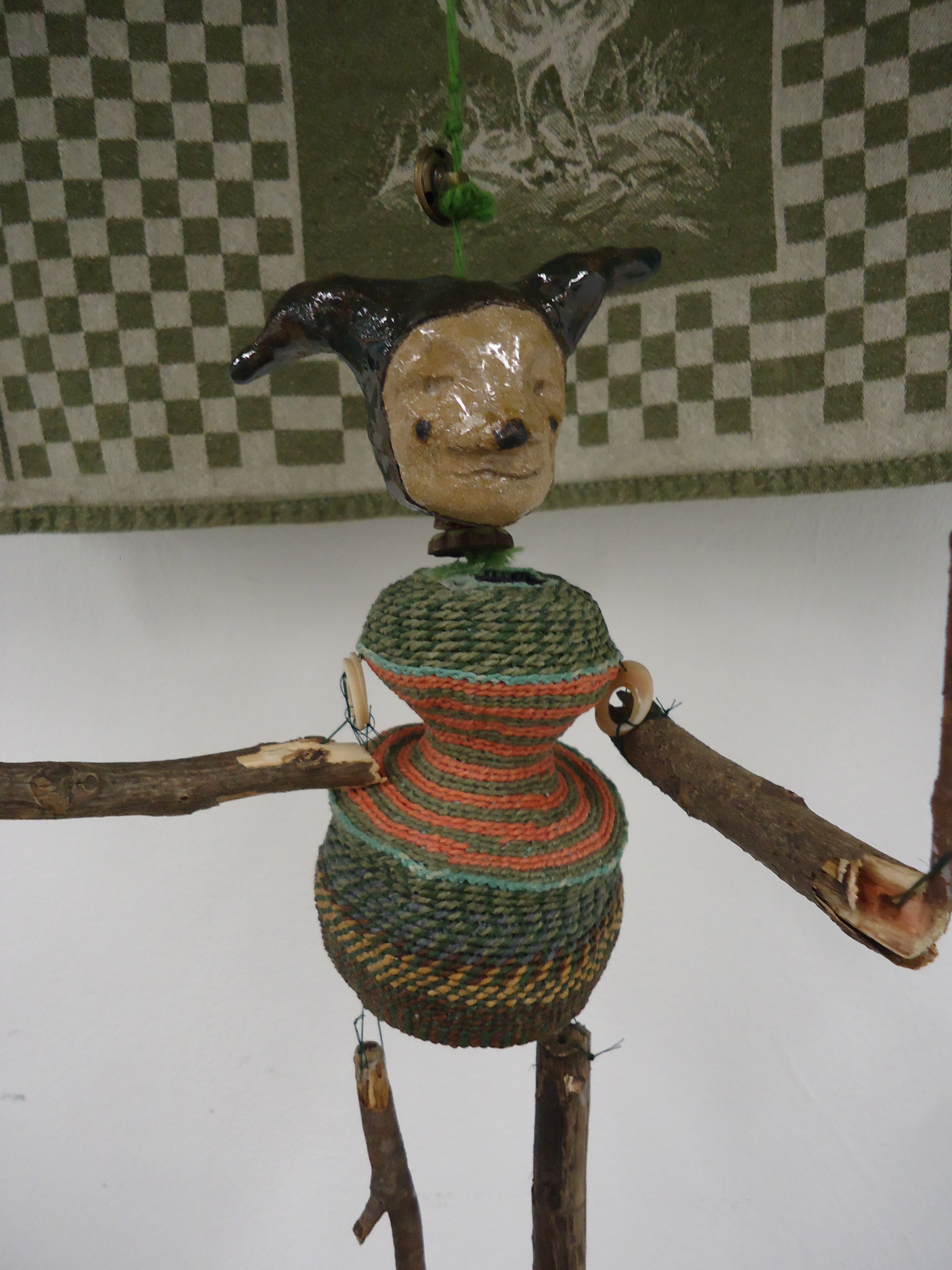 Glazed Ceramic, Found Sticks, Woven Basket, Found Fabric, String, Cardboard