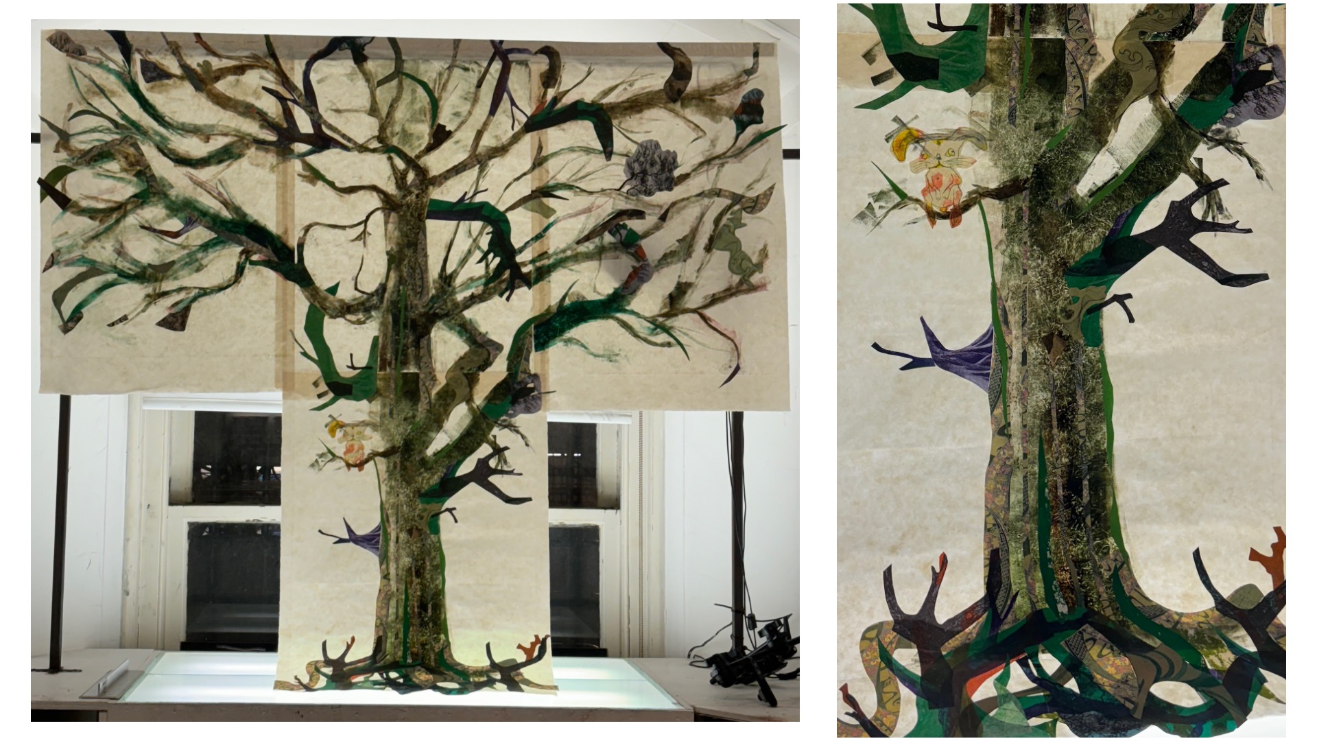 Monoprint on Okawara with collaged etchings, washi paper, and risograph prints